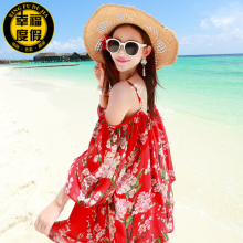 海边度假雪纺一字领显瘦宽松吊带荷叶边沙滩裙波西米亚短裙连衣裙