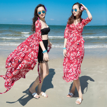 韩国女装连衣裙显瘦裹身裙波西米亚长裙开叉七分袖沙滩裙海边度假