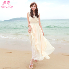 燊杰 新款波西米亚长裙沙滩裙雪纺大白色旅行海边度假连衣裙子