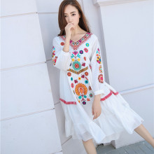 海滩裙沙滩裙海边度假波西米亚长裙夏大码修身显瘦刺绣棉麻连衣裙