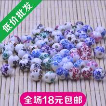 DIY手工材料青花瓷散珠配件 8MM贴花陶瓷圆珠 DIY中国结材料配件
