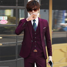 西服套装男士三件套韩版修身小西装四季商务职业正装新郎结婚礼服