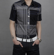 NSDMON夏装新款 时尚碎花男士韩版加肥加大码男装潮衬衫领短袖T恤