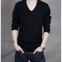 NSDMON秋季男装新款 加厚毛衣韩版修身V领黑色扭花男士线衫针织衫
