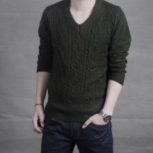 NSDMON春装新款毛衣 韩版修身男士V领提花针织衫线衫男装军绿黑色