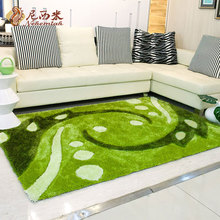 尼西米现代田园绿色清爽沙发客厅地毯 弹力丝茶几垫 时尚地毯