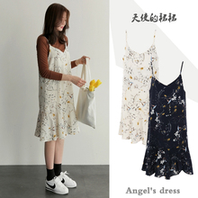 2017春夏季新款小清新雪纺碎花V领荷叶边吊带连衣裙女
