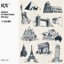 行李箱贴纸国家地标旅行箱贴个性笔记本拉杆箱贴画防水复古贝光4