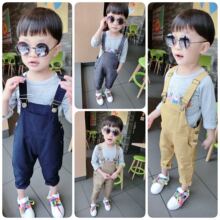2016秋装女童男童纯棉背带裤婴幼儿宝宝休闲长裤可开裆1-2-3-4岁