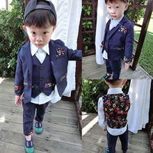 童装2017男童春秋款西装套装儿童小西装秋装潮花童礼服三件套西服