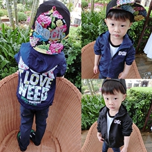 男婴幼儿春款棒球服 儿童连帽上衣2016童装春装 宝宝字母拉链衫