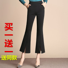 2017春季新款微喇叭裤女裤显瘦修身九分裤开叉鱼尾西裤休闲阔腿裤