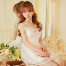 秋千梦日系甜美 2017春夏休闲短款吊带蕾丝连衣裙长裙两件套女