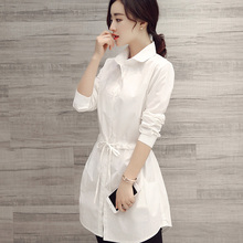 中长款大码打底衬衫2017春夏新款纯棉白衬衫女长袖韩版休闲衬衣潮