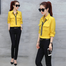 2017春季新款时尚套装秋装名媛雪纺衬衫韩版气质女装长裤两件套潮