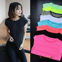 轻柔薄款瑜伽运动跑步健身短袖T恤网孔透气速干吸汗亮色罩衫女子