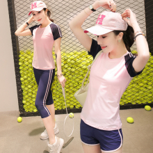 春夏新款短袖健身服女 韩版修身显瘦大码健身服跑步服锻炼服套装