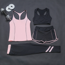春夏新品三件套瑜伽服修身显瘦健身套装韩版大码速干衣弹力运动服