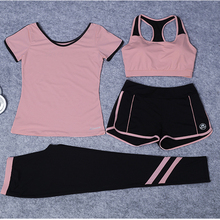 春夏新款瑜伽服三件套短袖短裤中裤健身服跑步服女显瘦愈加服套装