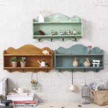 美式乡村复古实木墙面壁挂壁饰服装店铺衣帽挂钩装饰品隔板置物架