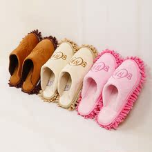2双包邮卡通擦地拖鞋雪尼尔懒人 拖地鞋可拆洗地板插 拖把鞋