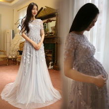 孕妇礼服高腰2017新款夏韩式大码显瘦主持人女结婚宴会敬酒晚礼服
