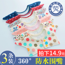 宝宝围嘴婴儿按扣围兜小孩防口水巾2层纯棉纱布360度旋转花瓣防水