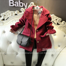 2016冬季新款中大童女孩荷叶袖呢子大衣童装女童中长款儿童棉外套