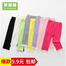 夏款女童打底裤中腰纯棉莫代尔蕾丝女童七分裤夏薄款中大童打底裤