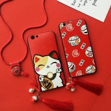 GY oppor9s手机壳硅胶 r9splus保护套挂绳防摔新年招财猫男女款潮