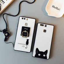 GY 华为p9手机壳p9保护套硅胶 挂绳指环支架简约猫咪p9防摔创意女
