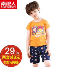 南极人儿童短袖T恤套装2017新款男童女童纯棉夏季装中大童两件套
