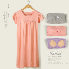 2017新款带胸垫睡裙女夏季莫代尔休闲宽松文胸一体中裙睡衣家居服