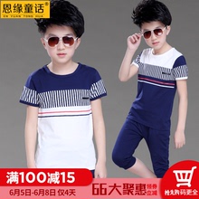 时尚童装3男童5夏装套装夏天2017新款8小男孩短袖9衣服11-13周岁