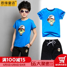 3儿童5男童夏装套装2017新款6纯棉8短袖中大童装9两件套11-13周岁