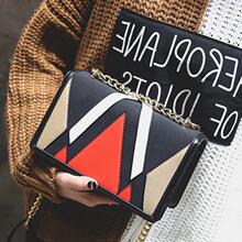 拼接小方包欧美时尚磨砂女包链条单肩包斜挎包包包2017春季新款
