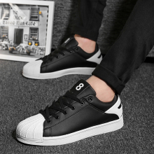 2017新款夏季男鞋子韩版潮鞋男士休闲鞋贝壳头百搭板鞋男镜面皮鞋