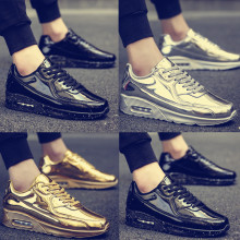 漆皮亮面鞋男士韩版运动休闲鞋气垫增高跑步鞋镜面学生板鞋潮鞋男