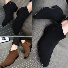 夏季英伦尖头磨砂皮短靴马丁靴男商务休闲高帮皮鞋透气中邦男皮靴