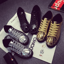 漆皮亮面男鞋子夏季潮流学生板鞋韩版休闲鞋低帮平底镜面皮鞋潮鞋