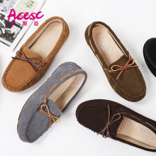 艾斯臣2017年春季新款豆豆鞋潮真皮蝴蝶结单鞋居家平底乐福鞋女鞋