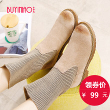 步伊鸟二层猪皮毛线英伦范儿马丁靴