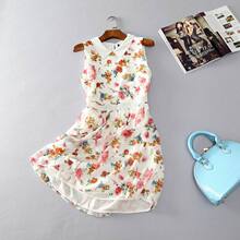 夏装新款外贸女百搭甜美田园风小碎花翻领镂空无袖背心连衣裙S15