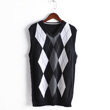 秋冬新款外贸男装百搭经典菱形格子V领针织衫背心马甲内搭M15/16