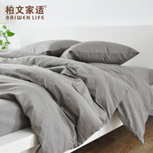柏文家 全棉双层纱纯色四件套柔软纯棉水洗纱布床单被套床品