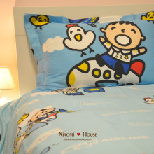 卡通蓝色大口仔飞机帽Minna No Tabo纯棉床上用品四件套床单床笠