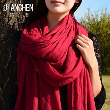 韩版春秋季棉麻纯色围巾女夏天大红粉丝巾长款百搭空调房披肩两用