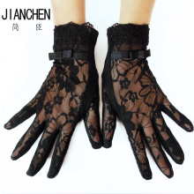 蕾丝防晒手套女夏季薄款短款开车防滑春夏天骑车遮阳冰丝弹力黑色
