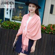 春秋围巾女旗袍披肩两用baby同款韩版纯色冬季拉毛仿羊绒百搭长款