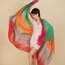 加大长款围巾彩虹渐变色绸缎面春秋丝巾夏季空调披肩防晒沙滩纱巾